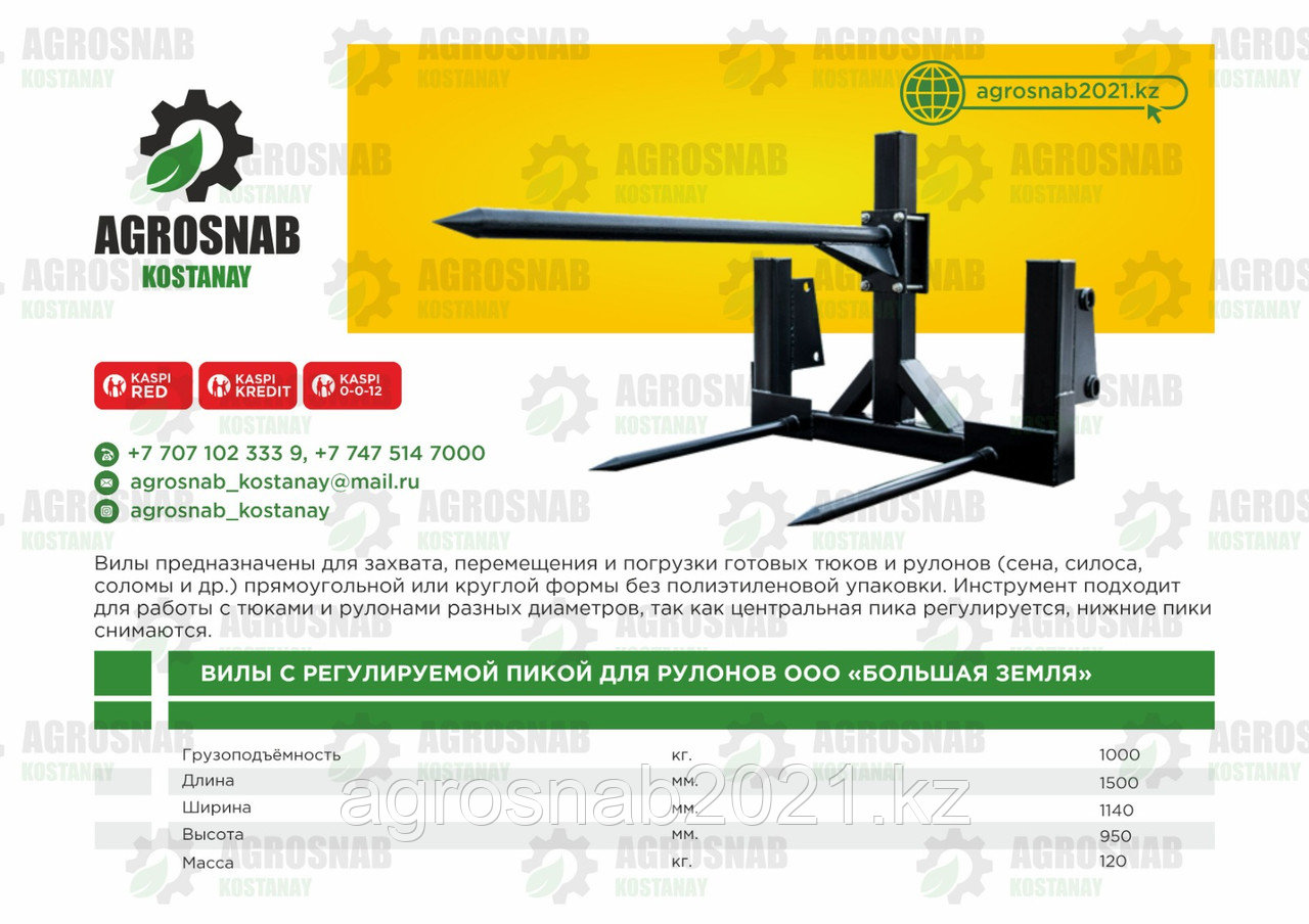 Инструмент подходит для работы с тюками и рулонами разных диаметров, так как центральная пика регулируется, нижние пики снимаются.